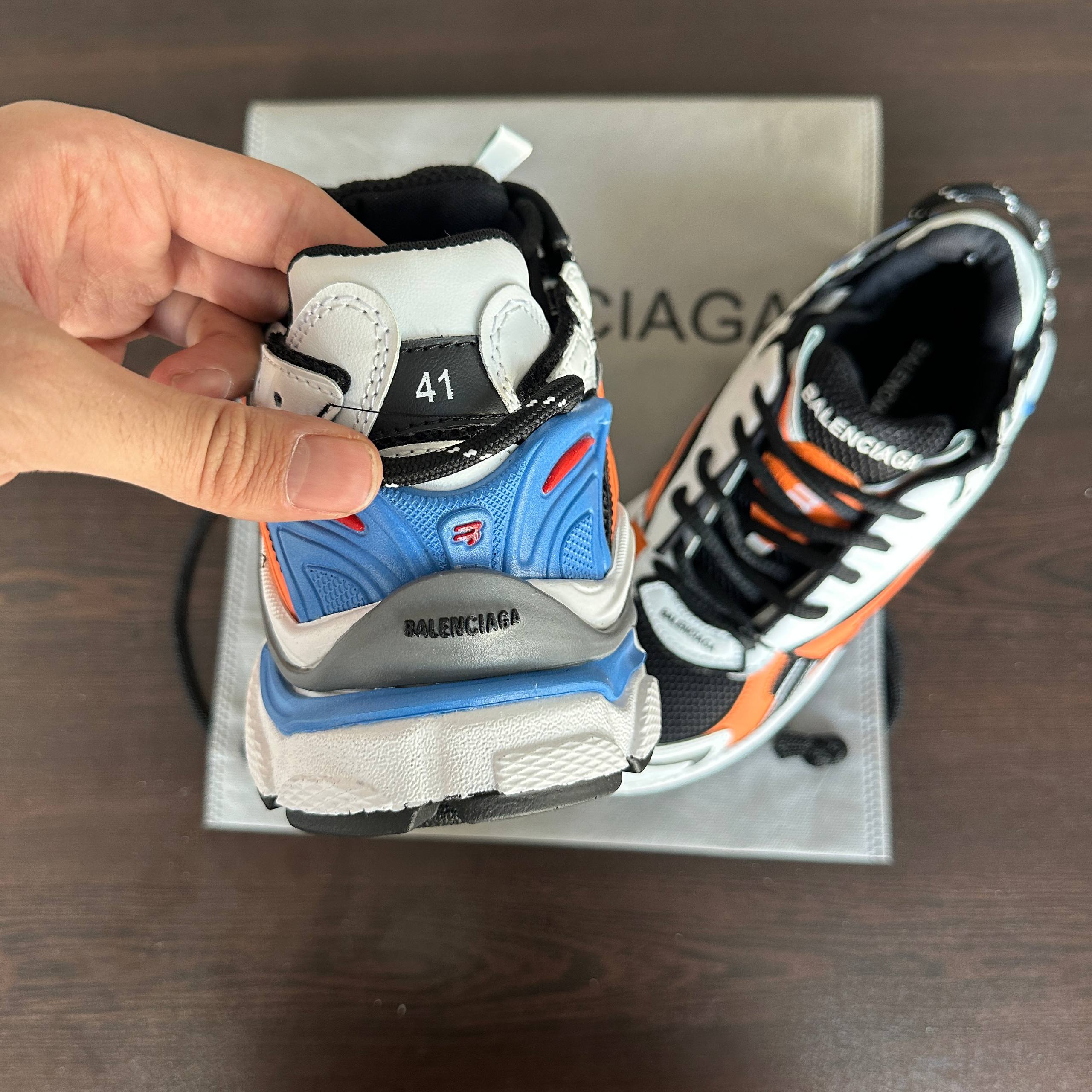 کفی ضخیم و ساختار حجیم این مدل علاوه بر ایجاد استایل ترند، راحتی مناسبی برای استفاده روزمره فراهم میکند. لوگوی Balenciaga بهصورت ظریف روی کناره و زبانه کفش قرار گرفته که هویت برند را تقویت میکند.