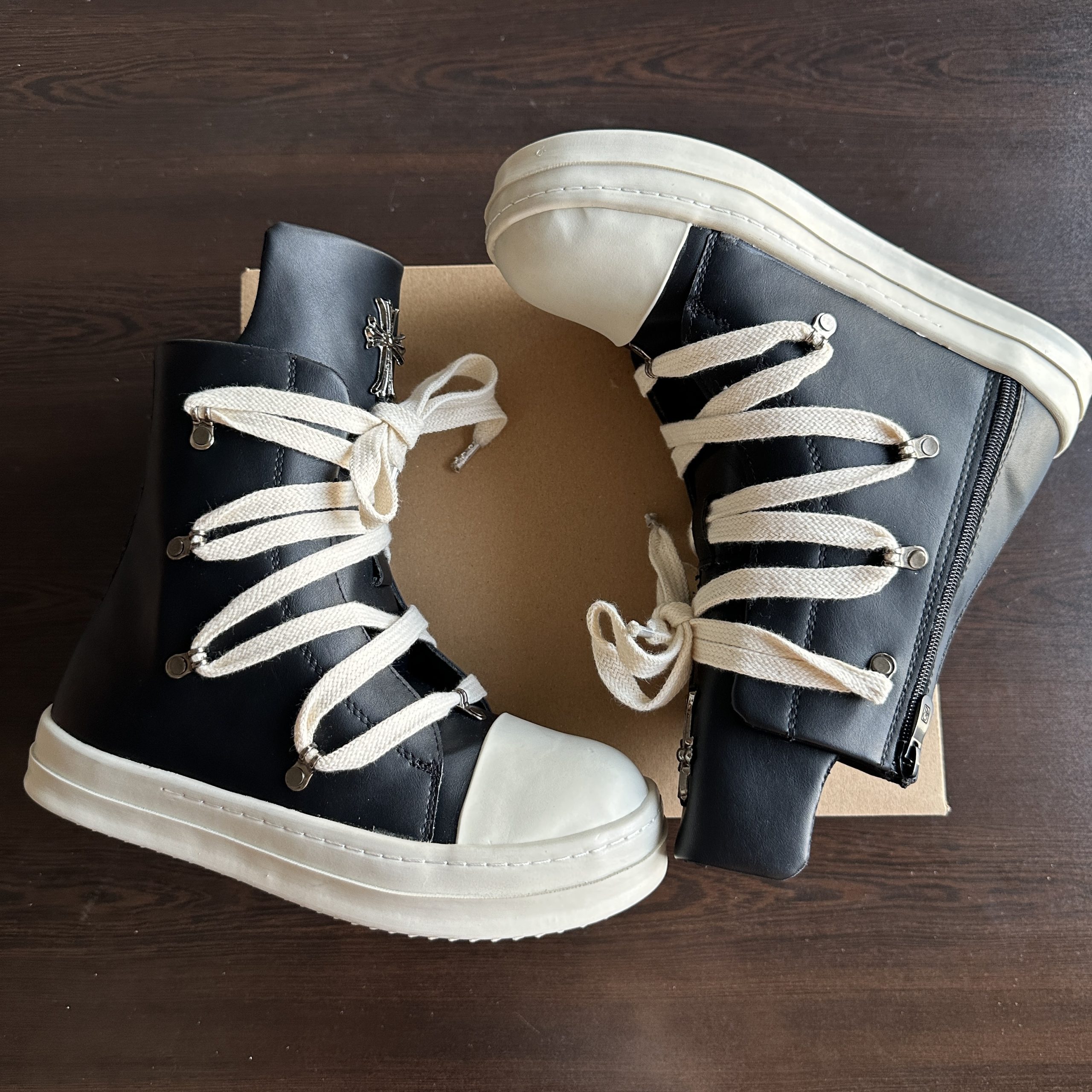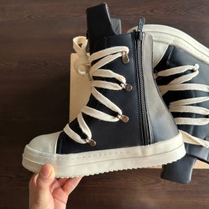 کفشهای برند **Rick Owens** بهعنوان نمادی از طراحیهای نوآورانه و متفاوت شناخته میشوند. این کفشها ترکیبی از زیباییشناسی مدرن و مینیمالیسم با رویکردی آیندهنگرانه به مد را ارائه میدهند. استفاده از متریالهای باکیفیت مانند چرم اصل و پارچههای مرغوب، به همراه جزئیات برجسته و غیرمعمول، ظاهری منحصربهفرد به این کفشها میبخشد.